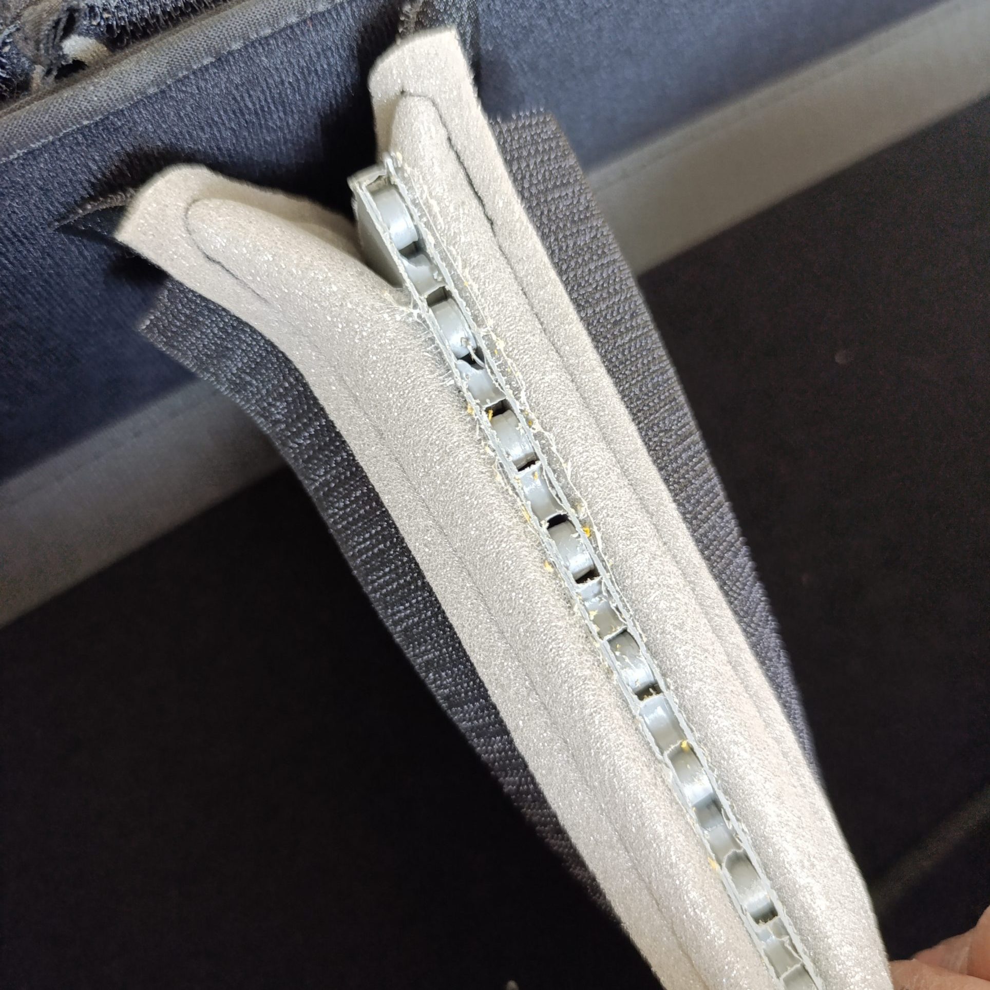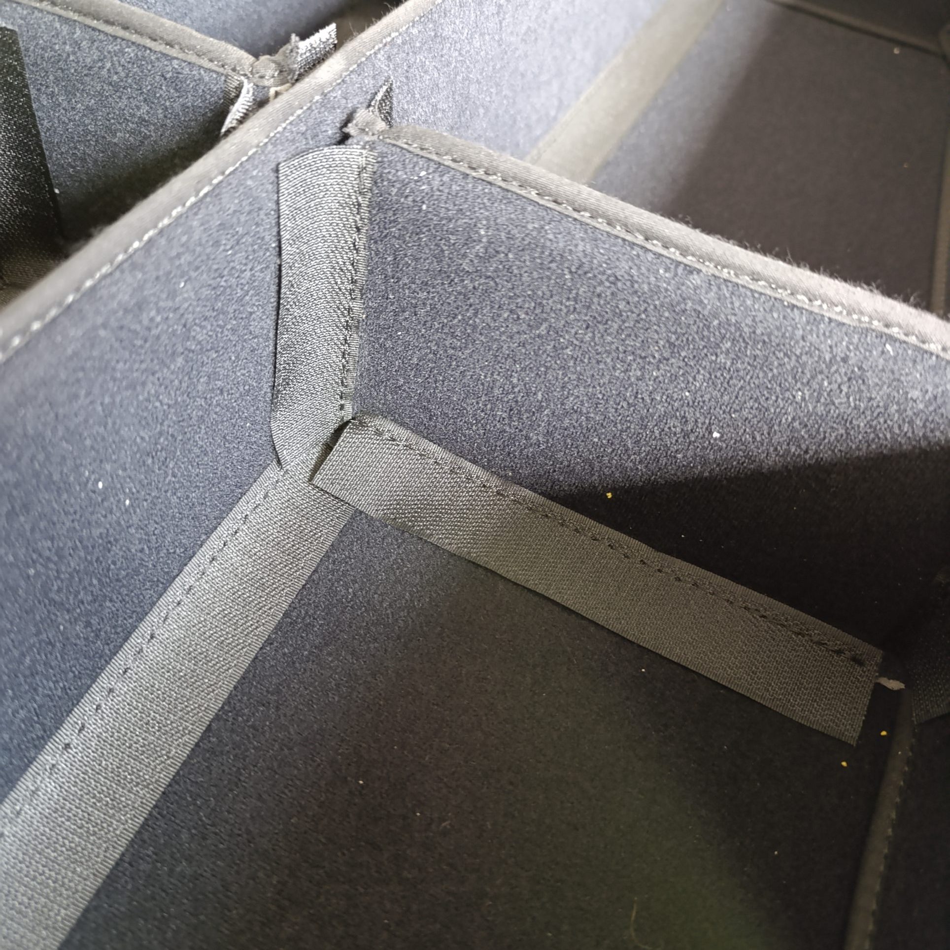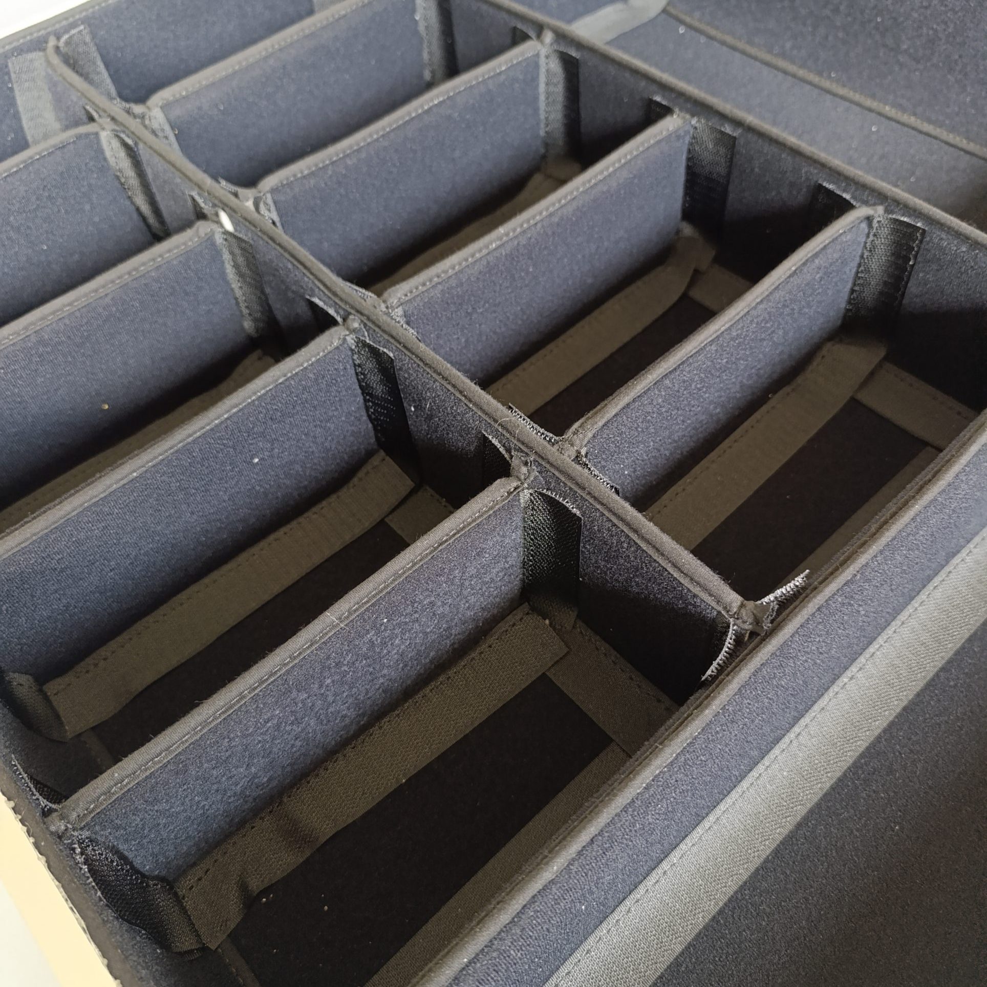 Gli interni modulari in nylon garzato ospitano pannelli in polipropilene rivestiti in velcro maschio, completamente riposizionabili per adattarsi a ogni esigenza operativa.