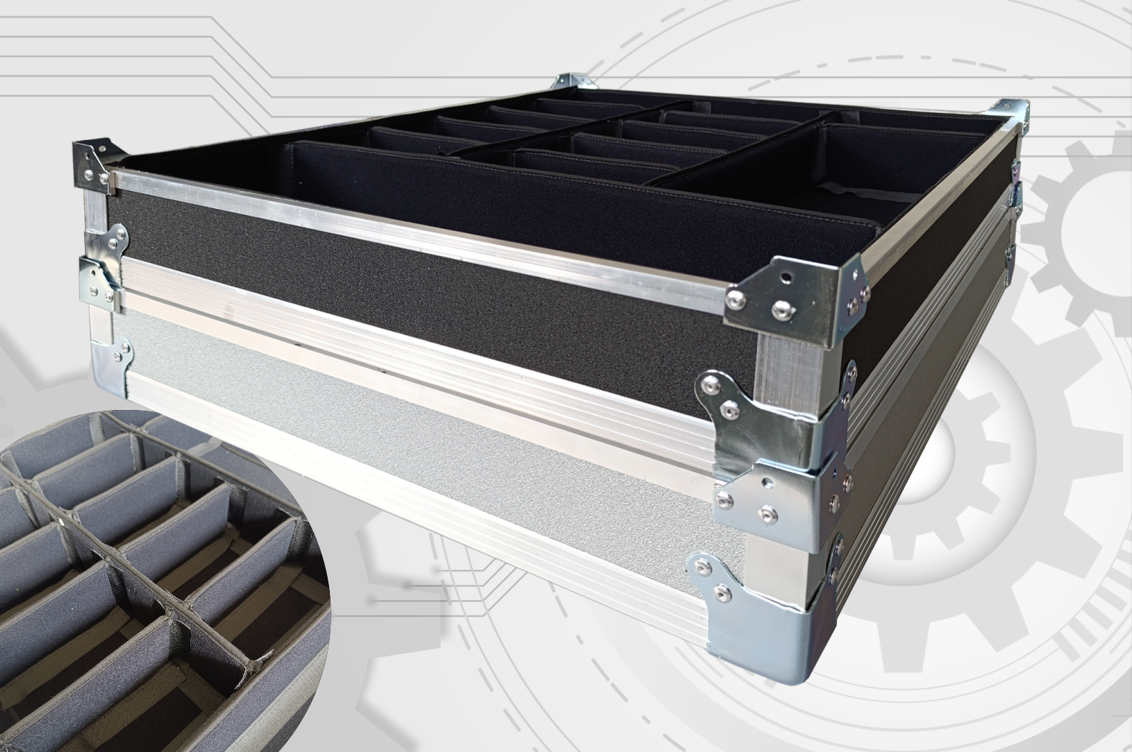 Progettata per offrire massima sicurezza nel trasporto di componenti delicati – elettronici, meccanici o speciali – FlexCase Pro è realizzata in polipropilene alveolare a nido d’ape, un materiale leggero ma estremamente resistente. La struttura è rinforzata da profilati in alluminio, garanzia di solidità e durabilità.